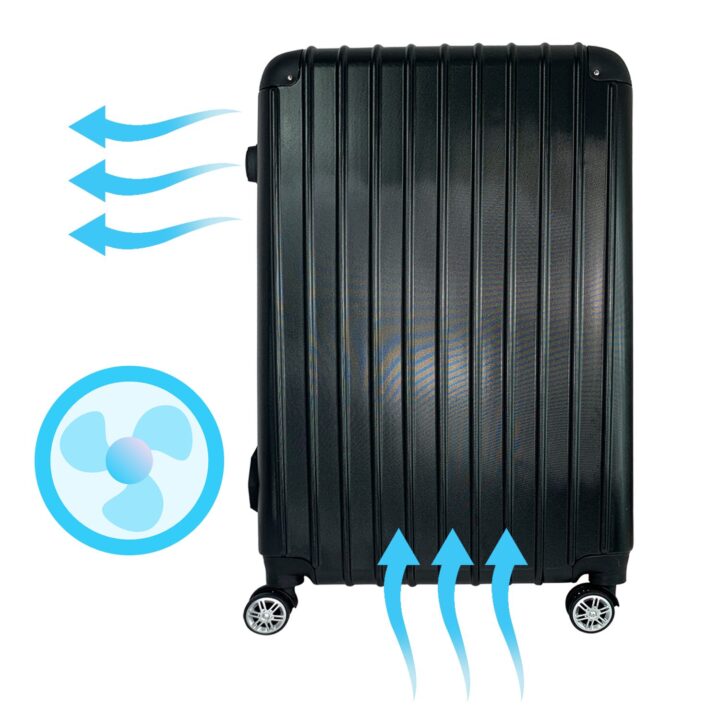 Die Bonsanto Mini Grow Box sieht aus wie ein schwarzer Koffer und steht in einem Kleiderschrank unterhalb der Kleiderstange.