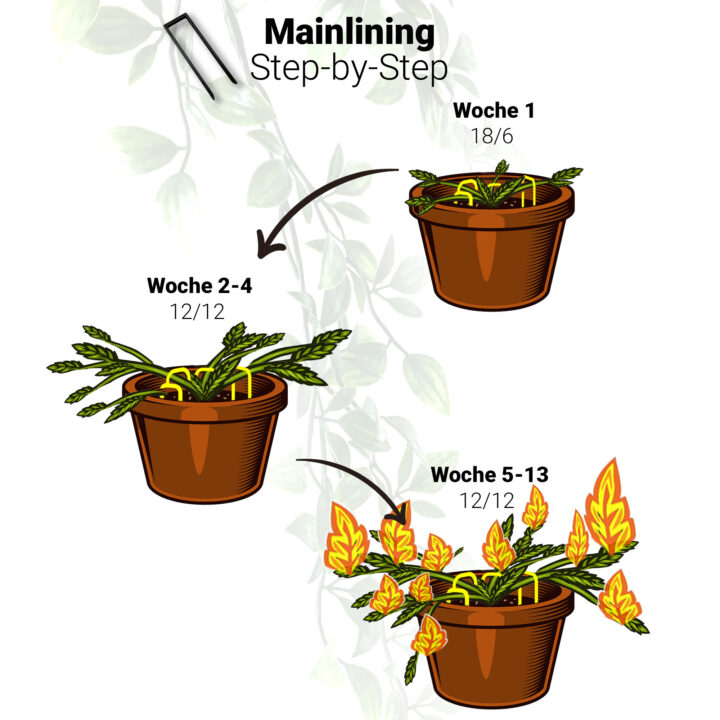 Mainlining ist eine bewährte Pflanzen-Trainingsmethode, die Topping und Low-Stress-Training (LST) kombiniert, um deine Pflanzen symmetrisch und kräftig wachsen zu lassen.