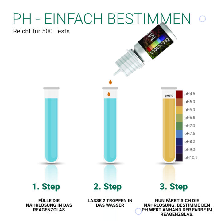 Das Bonsanto® pH-Testkit ermöglicht Ihnen eine präzise und einfache Kontrolle des pH-Wertes Ihrer Nährlösung.
